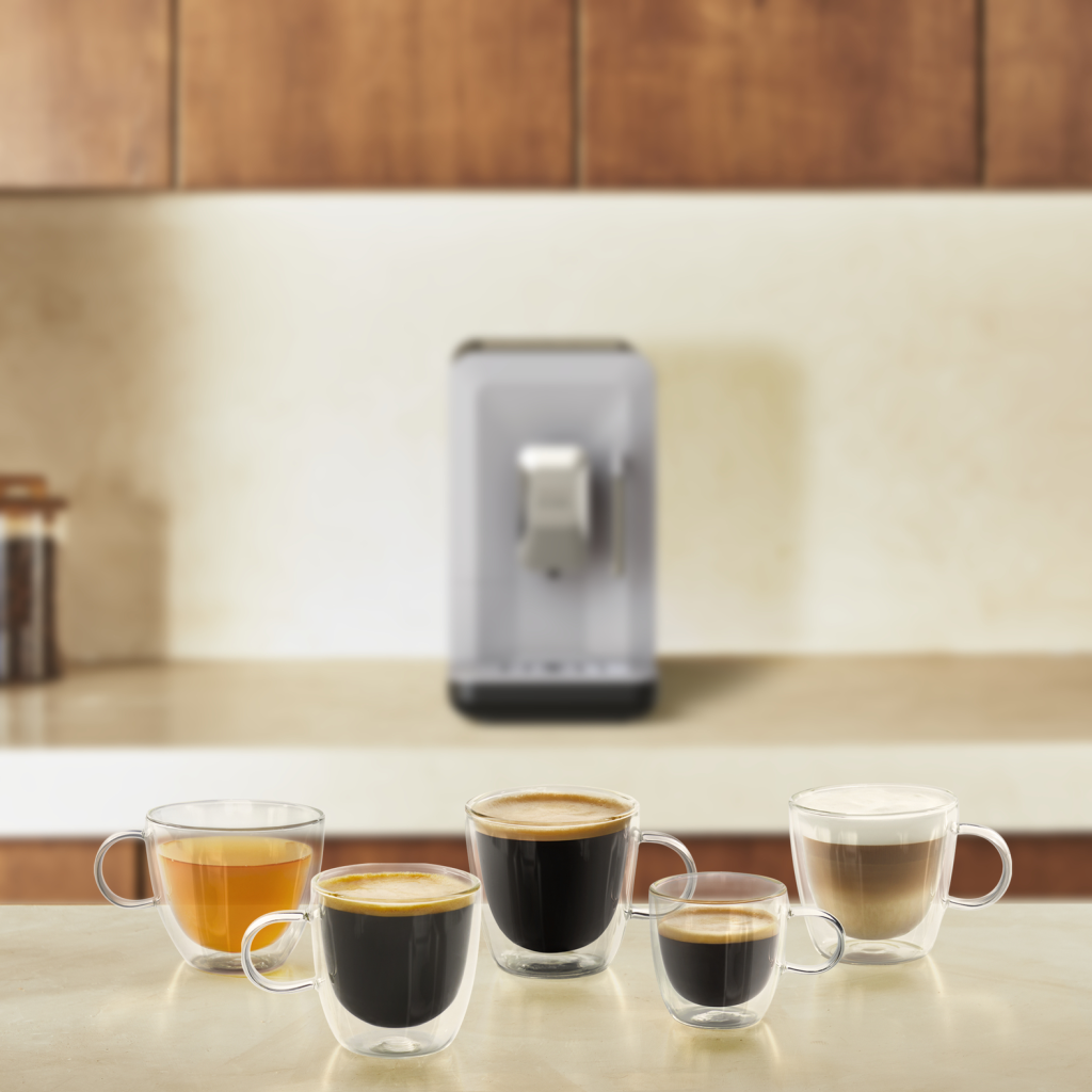 Otkrijte ultra-kompaktni, automatizirani aparat za kafu koji ne pravi kompromis po pitanju performansi. My Coffee + od Krupsa savršeno se uklapa u svaku kuhinju, nudeći tri recepta sa svježe mljevenom kafom i kremastu pjenu od mlijeka putem jednostavne dodirne kontrole. Zahvaljujući svom pametnom dizajnu, aparat takođe omogućava instant toplu vodu i lako čišćenje i održavanje.