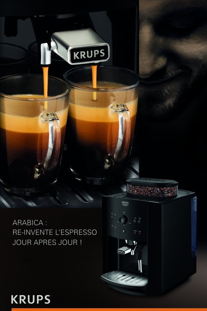 Iskusite okus espresso kafe uz KRUPS Arabica automatski espresso aparat. Uz praktičnost kompaktnog formata i bez kompromisa u kapacitetu, jednostavne su karakteristike povezane s naprednom tehnologijom kako bi se pravi okus kafe i espressa isporučio direktno u vašu šoljicu.