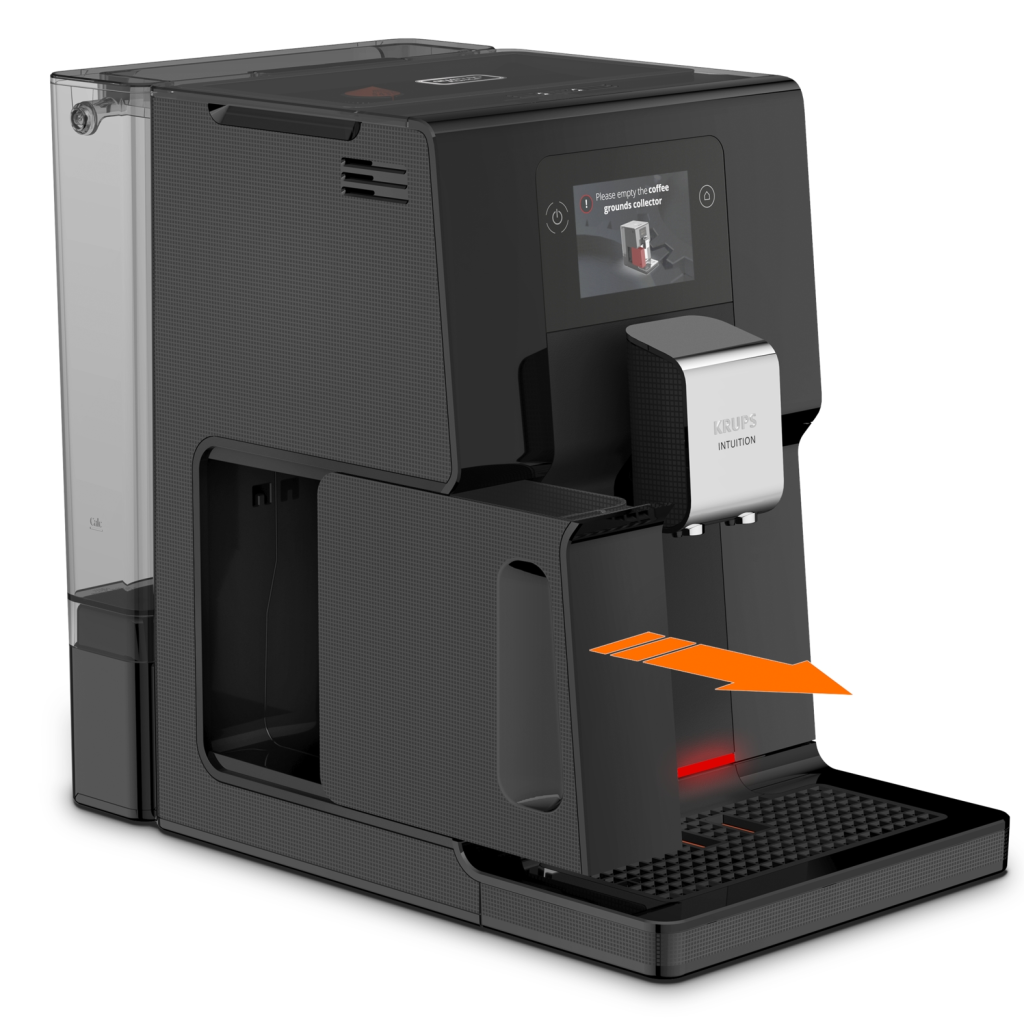 Intuitivni svjetlosni indikator, iznad posude za otkapavanje, svijetli crvenom bojom i na displeju će se pojaviti poruka u kojoj se traži da napunite posudu za kafu u zrnu ili spremnik za vodu.