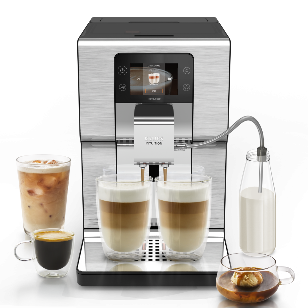 Sa Krups Intuition Experience Hot&Cold, bogati i aromatični napici su nadohvat ruke. Od klasičnih osnovnih do inovativnih inspiracija iz kafića, njegovih 30 prilagodljivih recepata nudi glatko barista iskustvo kod kuće—ili čak na putu. A zahvaljujući tehnologiji Cold Brew Aroma, uživajte u savršenom ekstrahiranju za ledene napitke koji obiluju okusom.