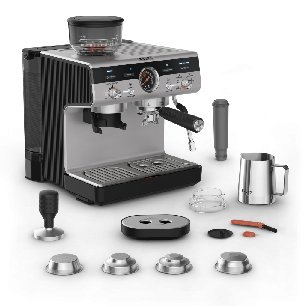 Uživajte u jedinstvenom iskustvu espresso kafe s Krups Precision aparatom. Ugrađeni mlin zajedno s intuitivnim interfejsom pruža potpunu kontrolu i espresso pun izvanrednog okusa i arome. Dizajniran za ljubitelje latte napitaka, profesionalna parna mlaznica omogućava vam istraživanje svijeta latte umjetnosti,sa svime što vam je potrebno da kreirate svoju prepoznatljivu šoljicu.